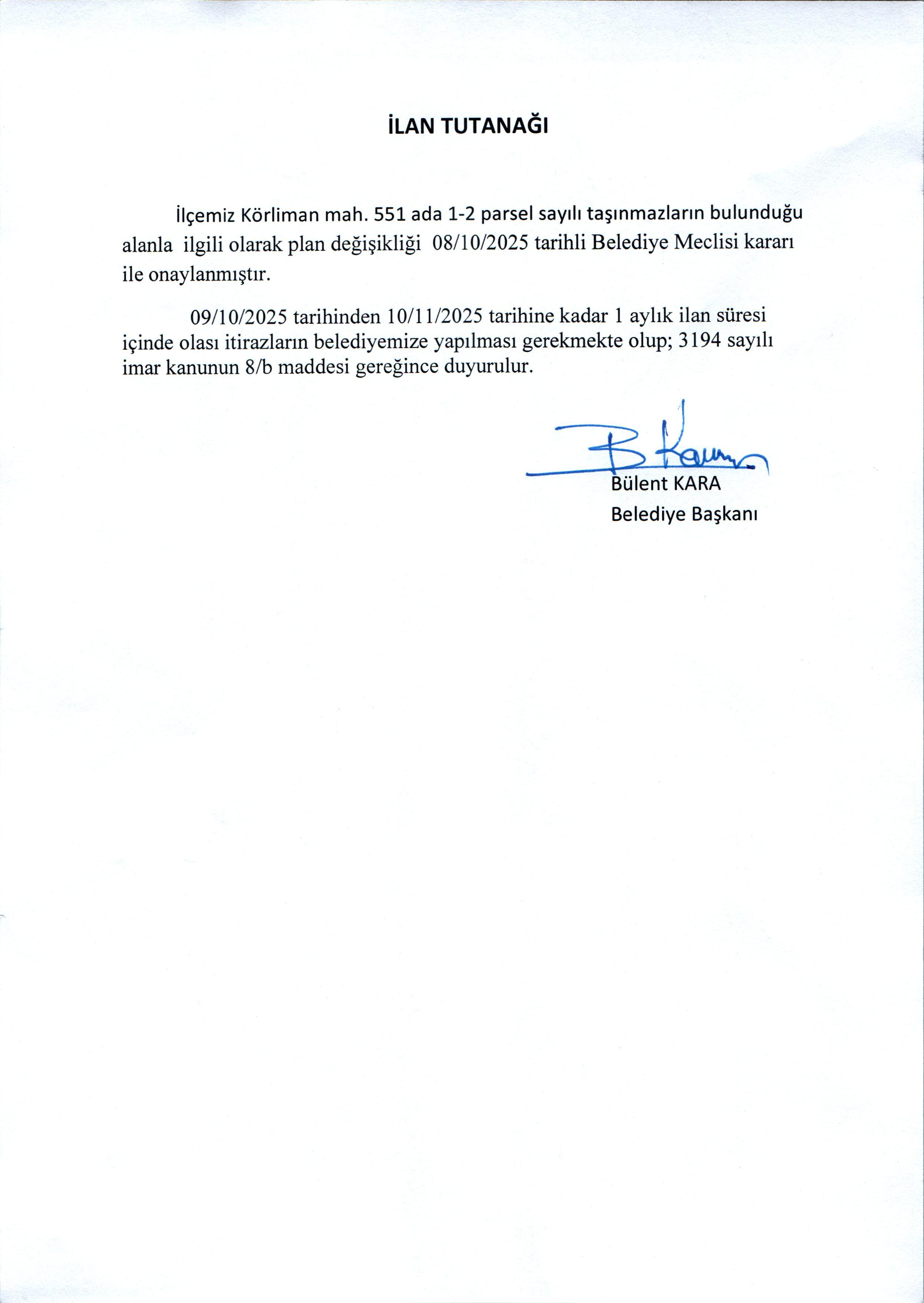 YENİKÖY MAHALLESİ, 3194 SY İMAR KANUNU 18. MADDESİ UYGULANMASI İLAN