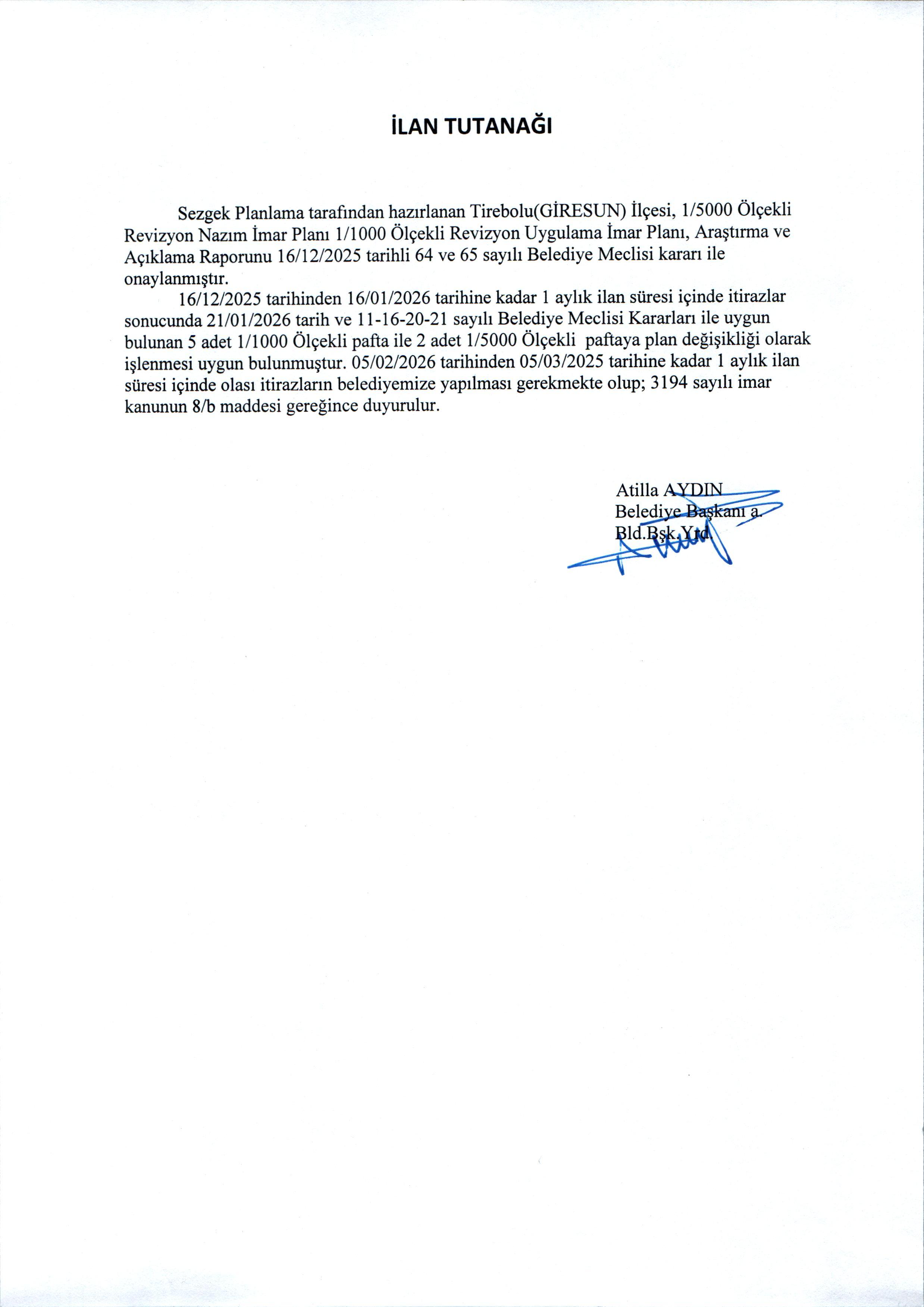 REVİZYON İMAR PLANI İTİRAZ SONRASI UYGUN BULUNAN DEĞİŞİKLİKLER